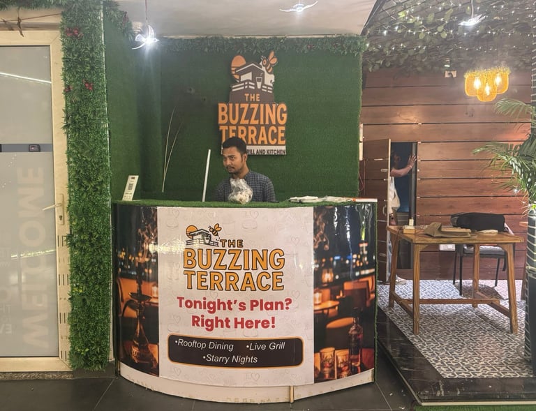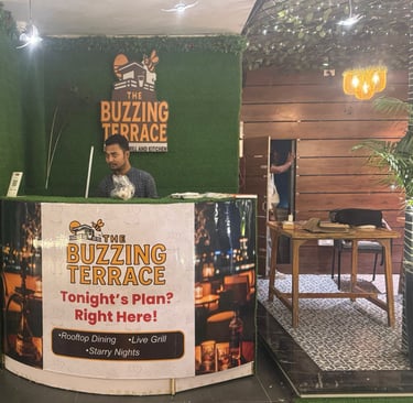 Reserve your spot at The Buzzing Terrace for an unforgettable rooftop dining experience in Rohini.